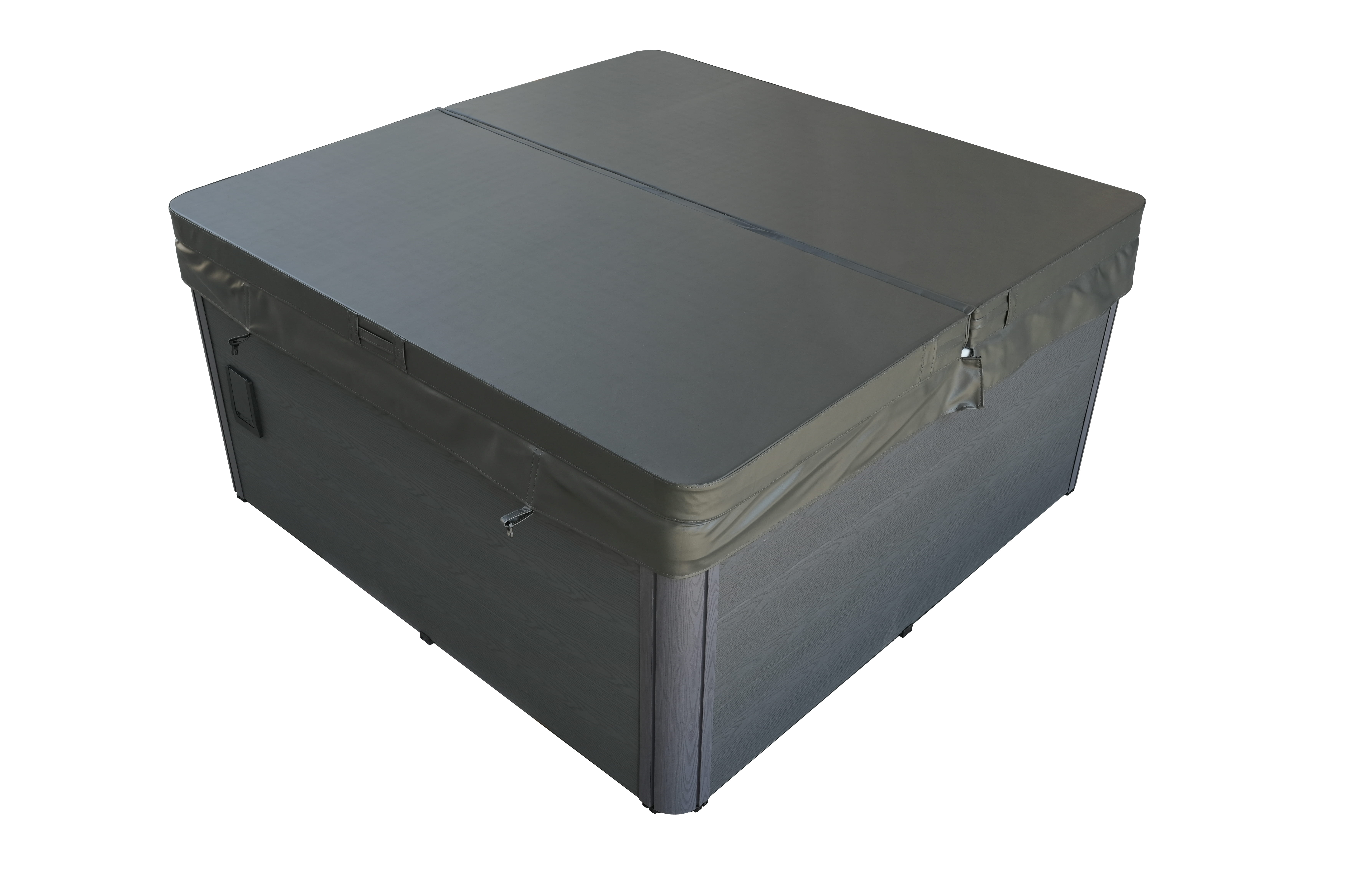 Spray foam shell on a 3" Aluminum insulated base. Encased in Heat Lock “Thermal Shield” Polyurethane sealed panels with aluminum heat reflection. This shield traps the heat lost from the tub, pump, and heater and directs it back to the tub. 27% less heat loss than standard tubs.